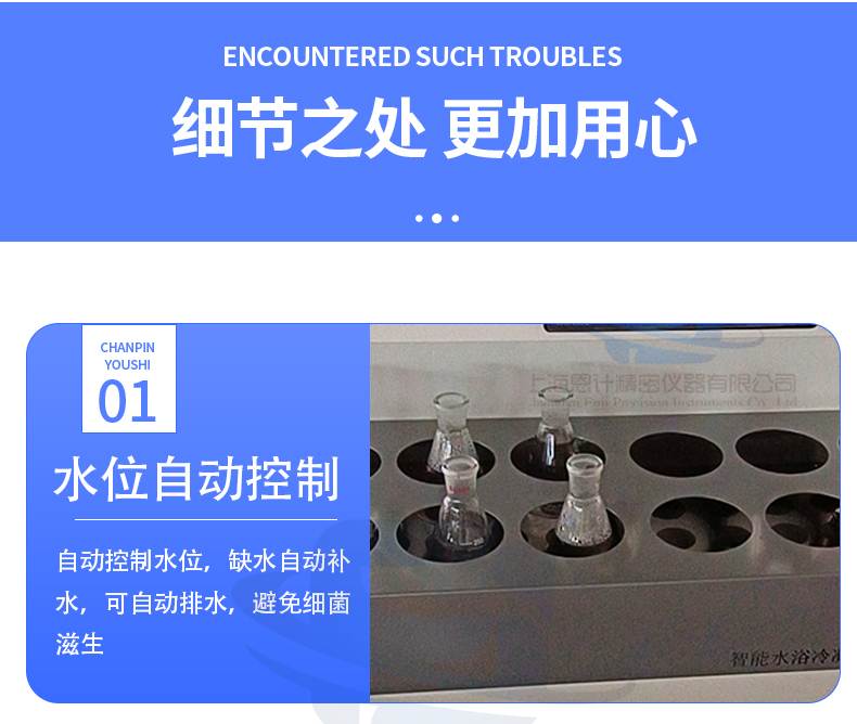 水浴控制:自動(dòng)進(jìn)水、自動(dòng)排水、缺水自動(dòng)報(bào)警補(bǔ)水